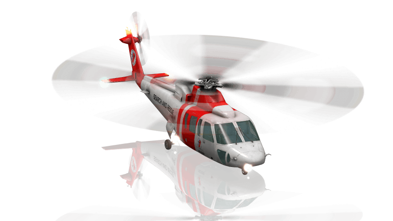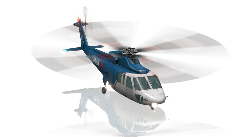 The Sikorsky S-76 is a commercial utility helicopter with twin turboshaft engines, four-bladed main and tail rotors and retractable landing gear. The S-76 was the first Sikorsky helicopter designed for commercial, rather than military, use and can seat 12 passengers. It cruises at 155 knots and has a range of over 400 nautical miles.