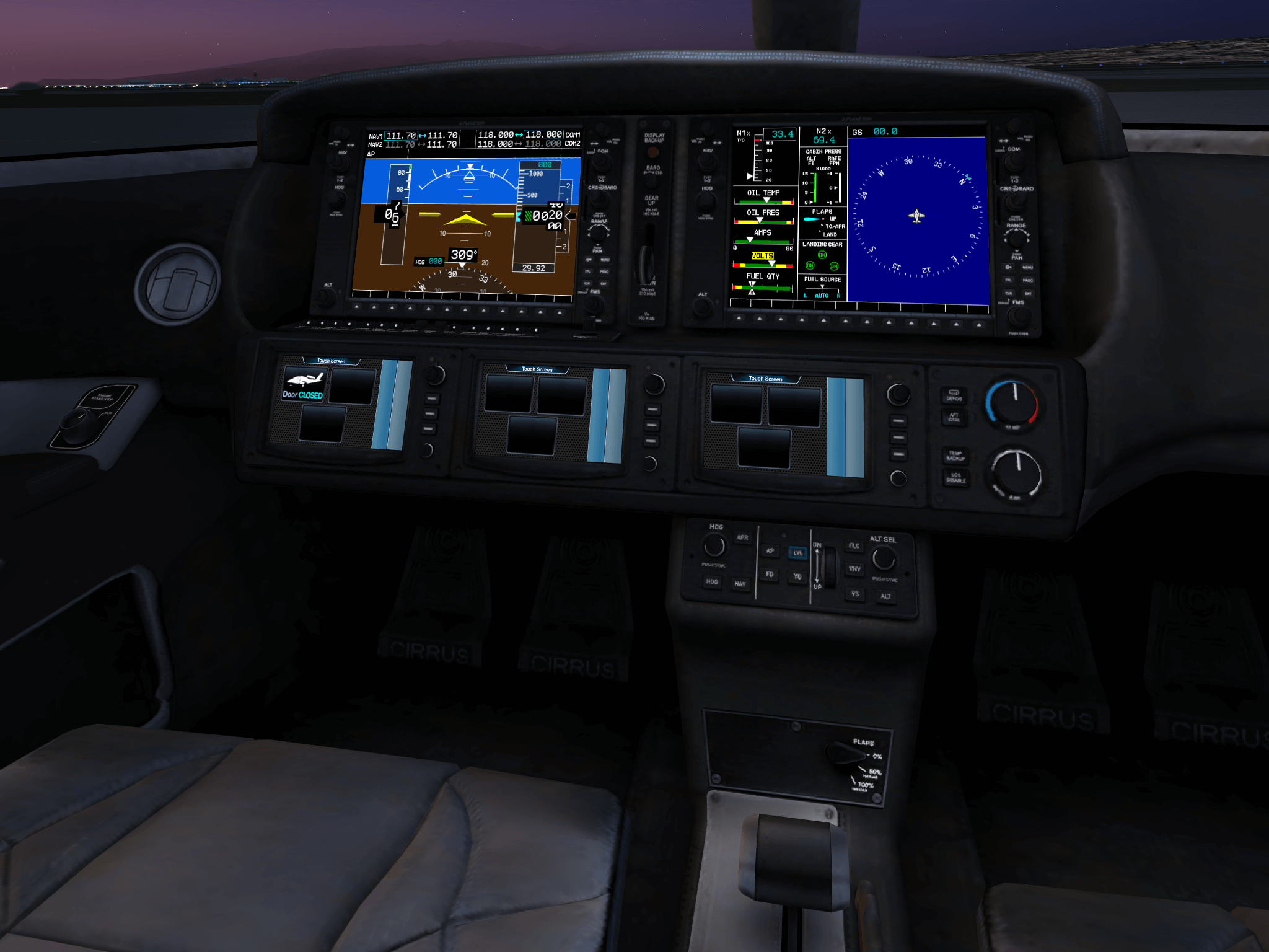 X-Plane Mobile’s Cirrus Jet is a single-engine, low-wing very-light-jet aircraft. It’s the first aircraft in the “personal jet” category and is designed for personal and business travel.